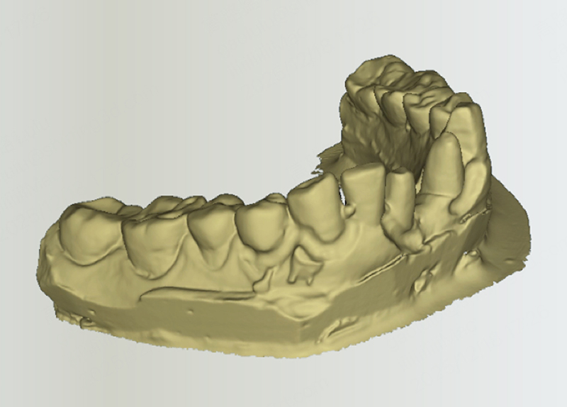 Single jaw 9.5s (10 shot), occlusion 5s (3 shot) ; the entire process of scanning a sectioned model order is 62s, and the entire process of an unsectioned model order with high quality is 56s.