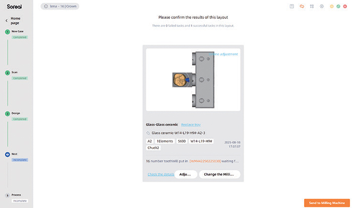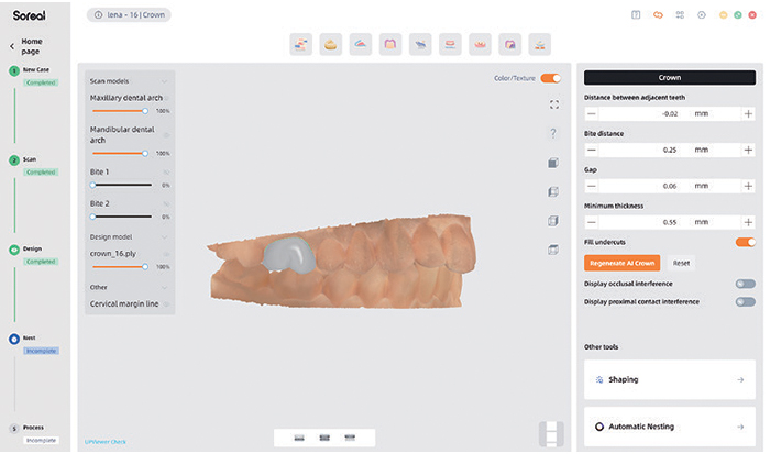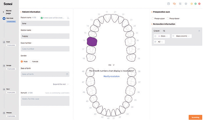 SOREAL intègre chaque étape de la dentisterie numérique à la chaise au sein d’un flux de travail unique et optimisé. Aucune conversion de fichiers, aucun transfert manuel — seulement une transition fluide de la prise d’empreinte à la conception, à l’usinage, puis à la restauration finale. Résultat : des traitements plus rapides, des résultats fiables et une meilleure expérience, tant pour vous que pour vos patients.