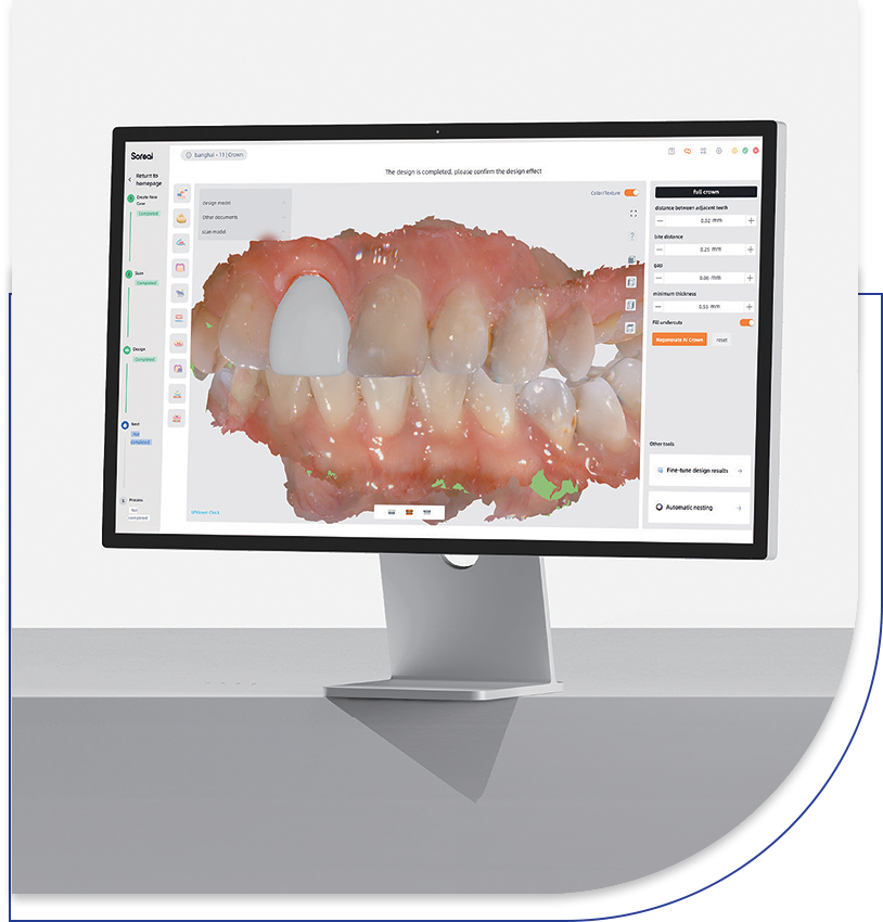 SOREAL intègre chaque étape de la dentisterie numérique à la chaise au sein d’un flux de travail unique et optimisé. Aucune conversion de fichiers, aucun transfert manuel — seulement une transition fluide de la prise d’empreinte à la conception, à l’usinage, puis à la restauration finale. Résultat : des traitements plus rapides, des résultats fiables et une meilleure expérience, tant pour vous que pour vos patients.