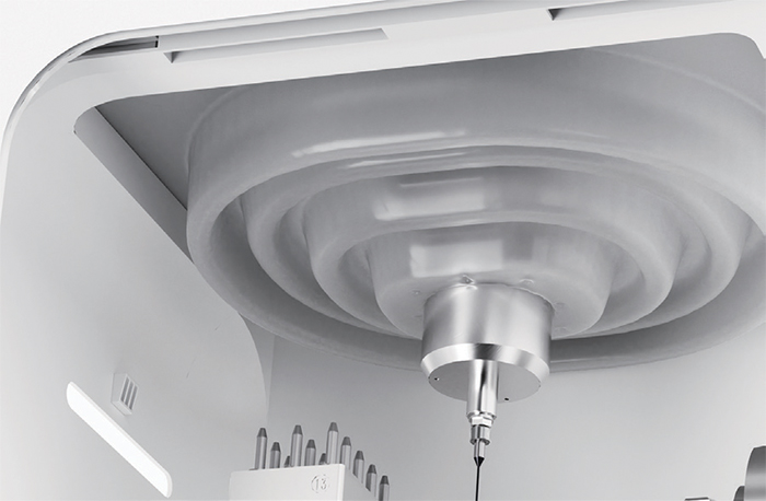 Un fraisage stable avec une précision au micron près. Le système à moteur «Servo» compense avec précision les micro-vibrations pendant le processus de fraisage, assurant une production stable, efficace et continue 24 h/24. Il permet un usinage de haute précision, maîtrisant parfaitement même les restaurations les plus complexes.
