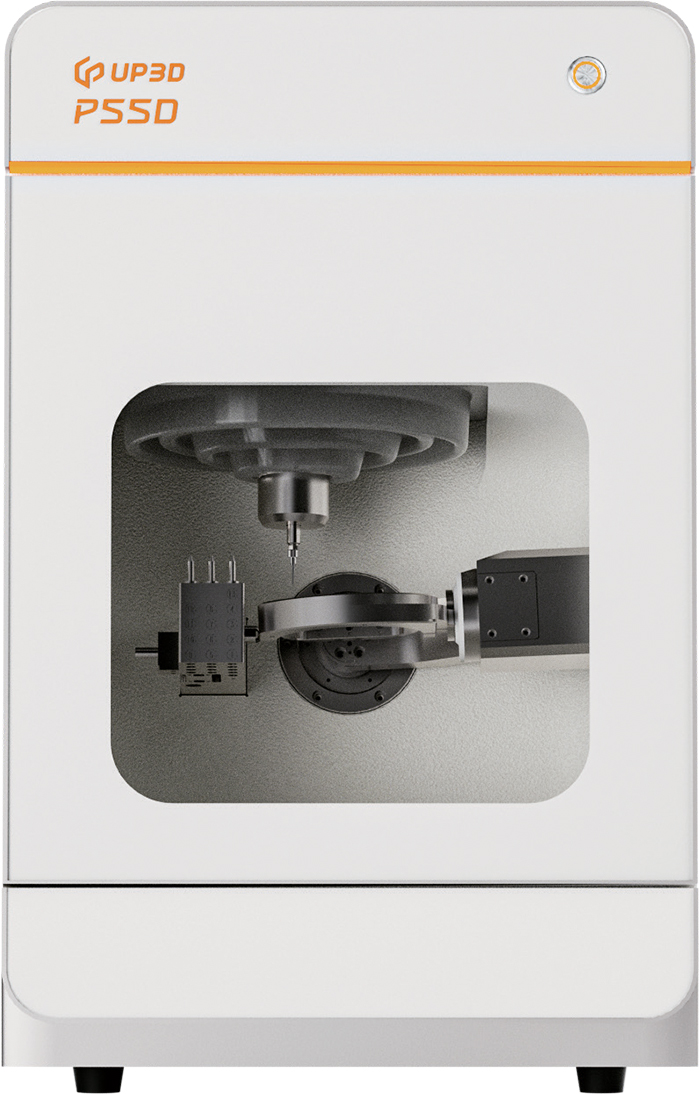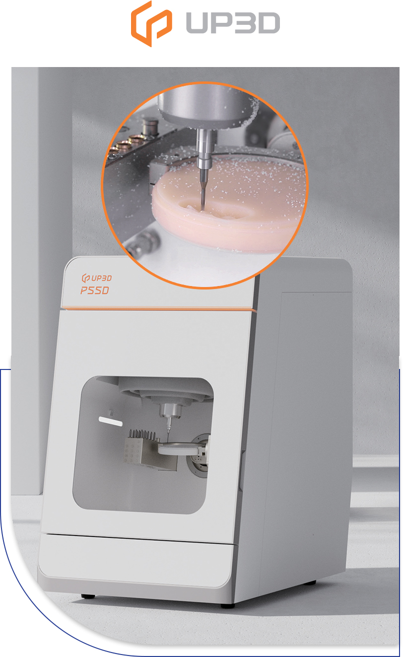 Équipée d’une fraise de micro-sculpture de 0,3 mm et d’une fraise de fraisage prolongée de 0,6 mm, la P55D permet un fraisage précis des détails faciaux, produisant des restaurations qui ressemblent étroitement aux dents naturelles.